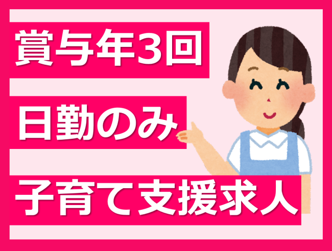 経験不問/残業ほぼなし/子育て支援求人/賞与年3回!頑張りをしっかり評価!