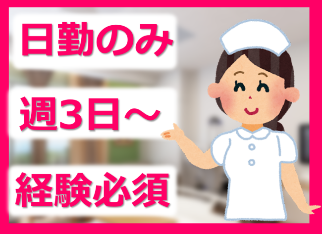 週3日~、1日実働6時間~/病院・介護施設での勤務経験必須/勤務日数、曜日相談可/正社員登用あり
