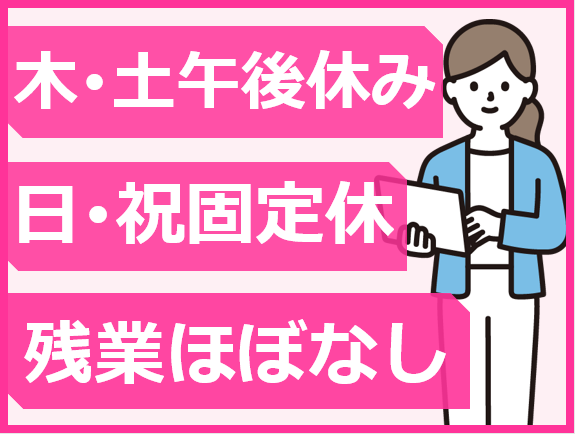 ・日曜、祝日と木曜、土曜の午後もお休み!残業も月2時間と少なめ!