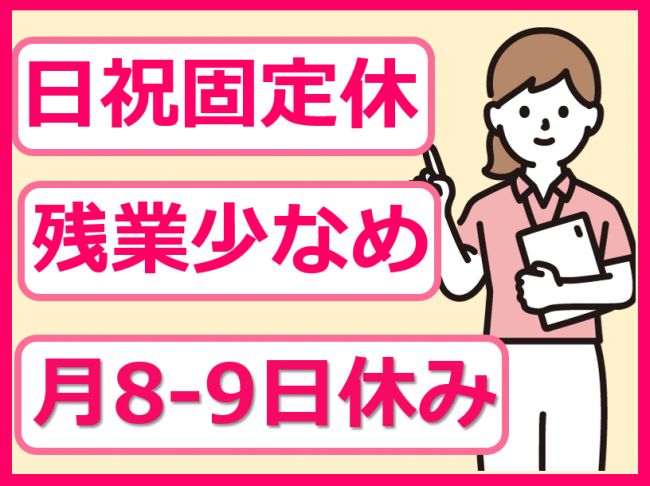 月8~9日のお休み!日祝固定休!残業かなり少なめ!資格があれば経験は不問!
