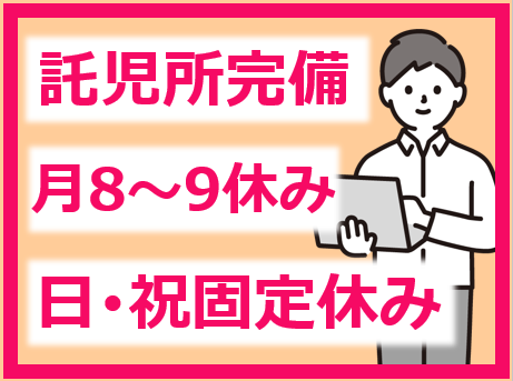託児所完備!事業所内保育料補助、病児保育料補助、給食費補助あり!安心してお子様を預けられます!