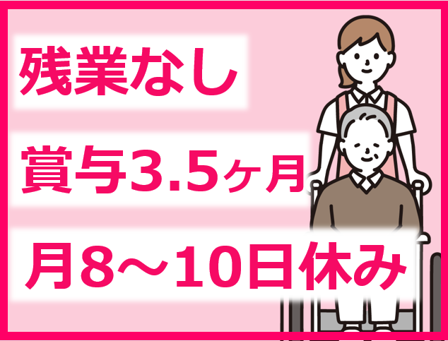 残業なし/賞与3.5ヶ月/有資格者歓迎/入職後の資格取得も可能/急なお休みも相談可能