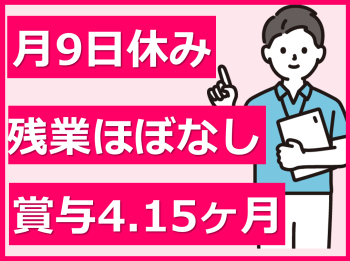 | 休日・休暇 | ・月7日(2月のみ)~10日休み ・年間休日110日 ・6か月経過後の年次有給休暇10日 |
