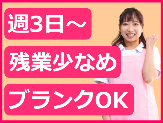 介護業務経験をお持ちの方歓迎/残業少なめ(月平均2時間)/完全週休二日制/勤務時間・日数応相談