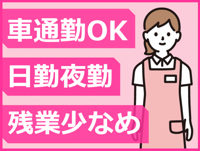 介護業務経験のある方歓迎/残業少なめ(月平均2時間)/月8~9日休/車通勤OK