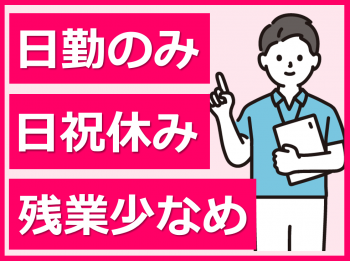 | 休日・休暇 | ・1か月単位の勤務表による ・年間休日数120日 ・6か月経過後の年次有給休暇日数10日 ・慶弔休暇 |