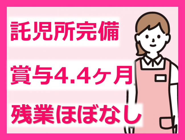 託児所完備!スタッフの子育てを支援!資格・経験必須/賞与4.4か月/残業ほぼなし