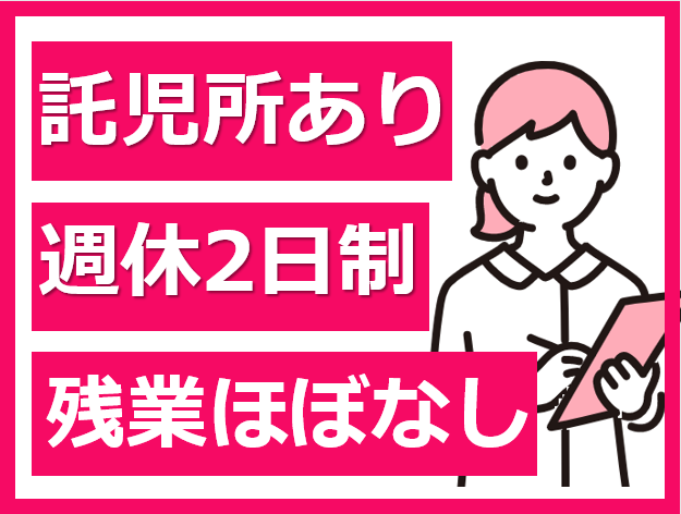託児所完備/賞与4ヶ月/週休二日制/年末年始休み/残業ほぼなし/年間休日120日