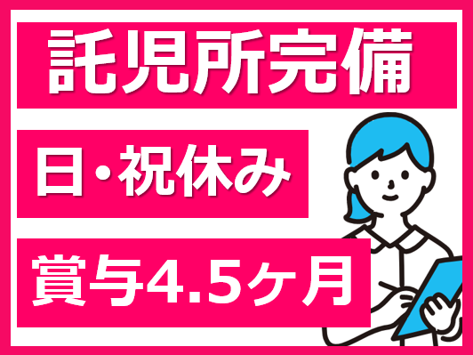 託児所完備/日勤のみ(夜勤なし)/残業少なめ/賞与4.5ヶ月/年間休日108日