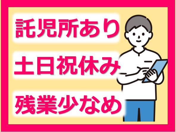 託児所完備/賞与3.40ヵ月/原則土日祝休み/残業少なめ/車通勤可/経験者歓迎