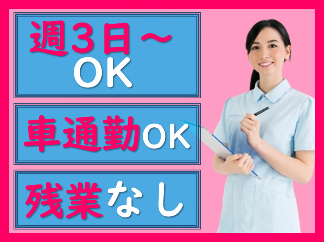 時間、日数は相談OK!病院や施設での看護経験がある方歓迎!マイカー通勤可
