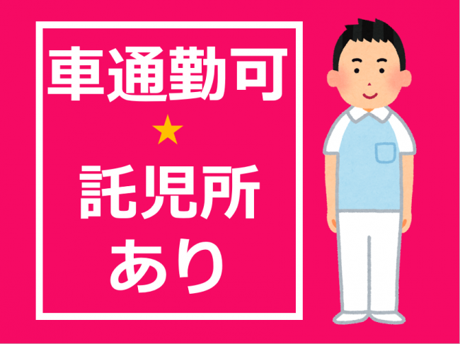 託児所完備/残業ほぼなし!日曜は固定の休み/正社員登用あり/昇給賞与あり/車通勤OK!