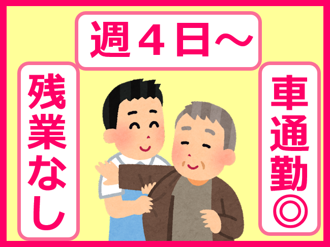 | 求める人材 | 〇学歴 ・不問 〇必要な経験・スキル ・不問 〇必要な免許・資格 ・介護職員初任者研修修了者、介護職員実務者研修修了者、介護福祉士:あれば尚可 ・資格のない方もご相談ください ・普通自動車運転免許:あれば尚可(AT限定可) |