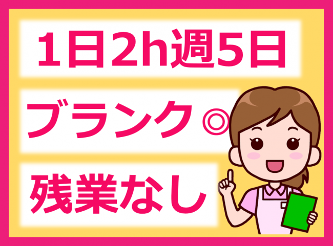 1日2時間の短時間勤務/残業なし/日曜固定休/スキマ時間に働けます/労働時間に応じて各種保険加入