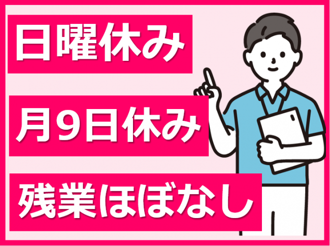 残業ほぼなし/賞与3ヶ月/日曜日固定休み/車・バイク通勤OK/お買い物券など福利厚生充実