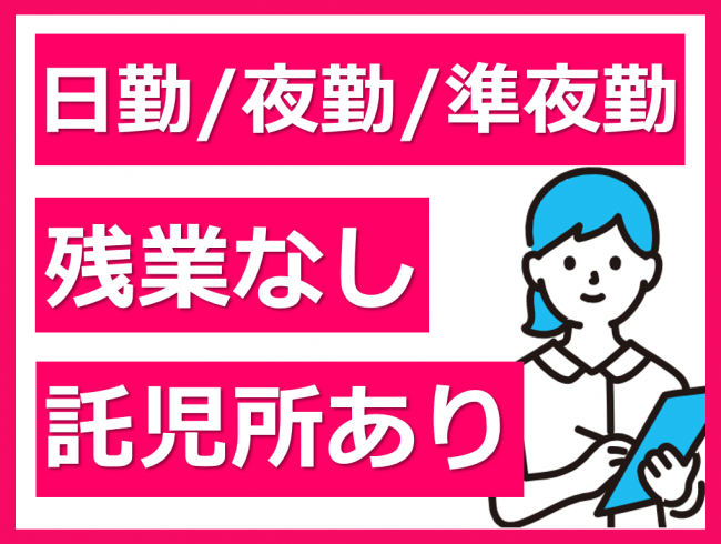 ・託児所完備!24時間預けられるので、夜勤、準夜勤でも安心してお仕事できます!