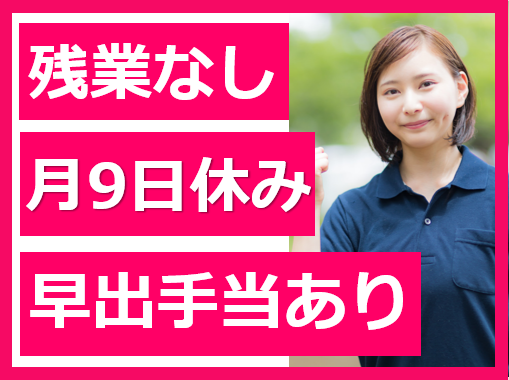 月9日休み/残業なし/ブランクOK/早出勤務は手当あり/休日は相談OK
