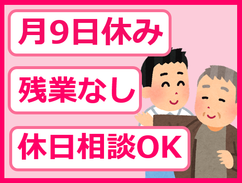 残業なし/月9日休み/休日は応相談なのでプライベートも充実