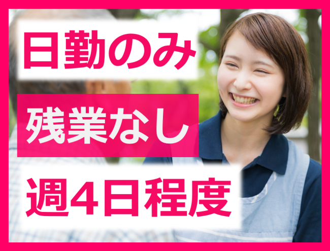 ・残業なし!日勤のみ(夜勤なし)!勤務は週4日程度でOK!