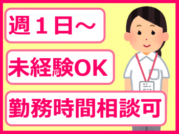| 勤務時間 | ①7:00~16:00 ②8:30~17:30 ③11:00~20:00 ※休憩時間:60分 ※時間外労働時間:なし ※週所定労働日数:週3日~週5日 |