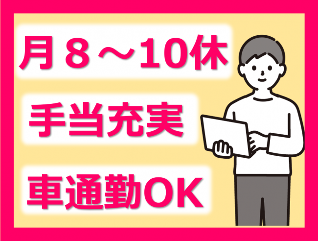 | 休日・休暇 | ・その他 ・月8日~10日の休日 ・年間休日109日 ・6か月経過後の年次有給休暇10日 |