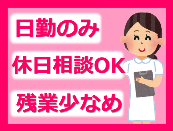 ・残業月10時間以内!日勤のみ(夜勤なし)!
