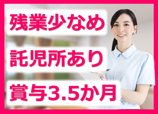 訪問看護経験者歓迎/託児所完備/賞与3.5ヶ月/残業少なめ/年間休日120日