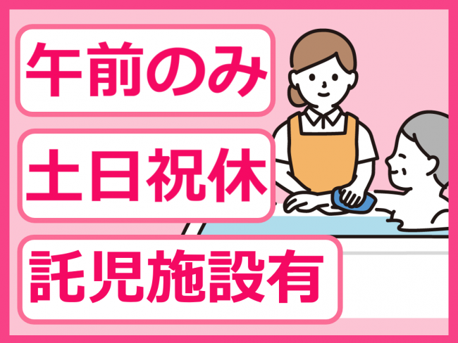 託児所完備!1日3時間勤務、入浴介助専従のお仕事!残業ほぼなし!土日祝はお休み!