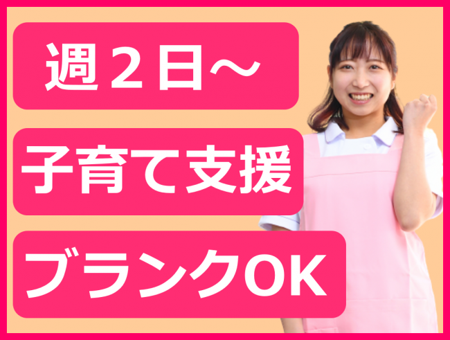 土日祝勤務できる方歓迎/週2日~/就業時間応相談/残業なし/ブランクOK/子育て支援