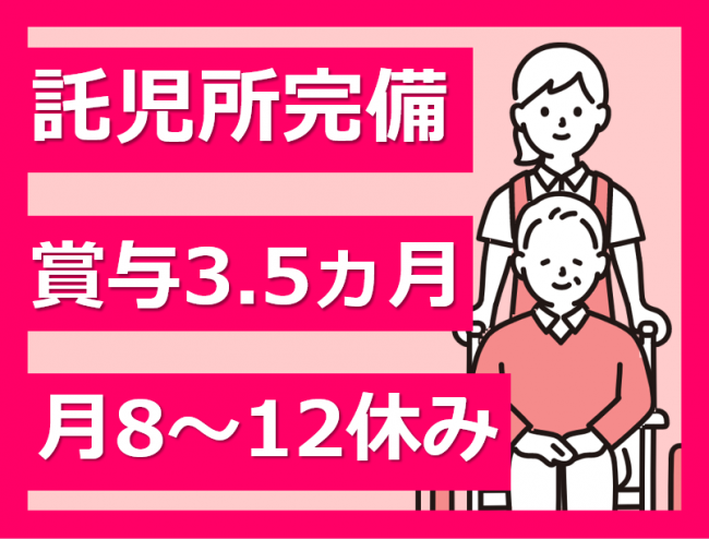 経験者歓迎!資格手当あり/月8~12日休み/賞与3.5ヵ月/託児所完備でスタッフの子育てを支援