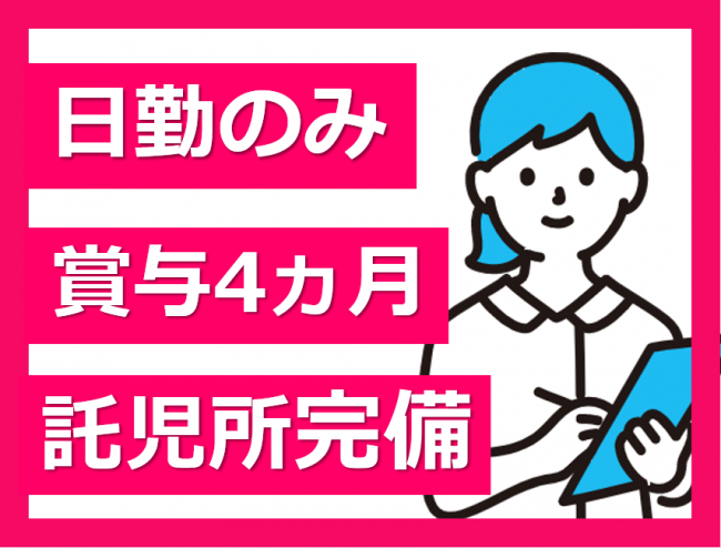 託児所完備でスタッフの子育てを支援!賞与4ヶ月/残業少なめ/日祝は固定休み!手当充実しています