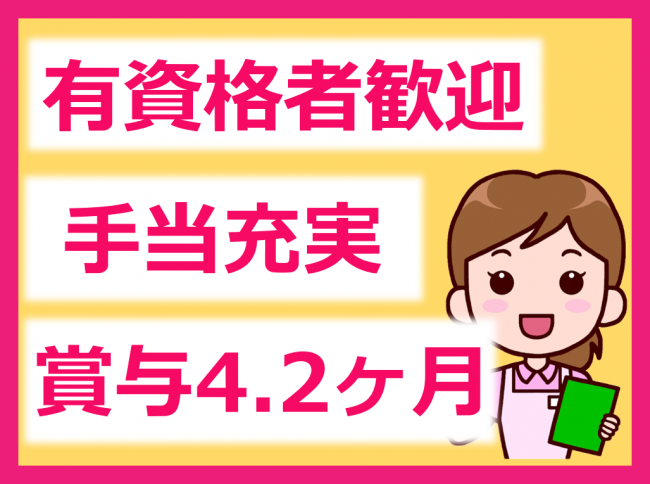 介護福祉士をお持ちの方歓迎!無資格の方も相談に応じます!昇給あり/賞与4.2か月