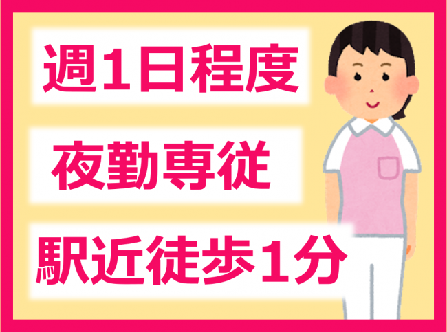 有資格者募集/夜勤専従で少ない日数でもしっかり収入を得られます/駅から徒歩1分