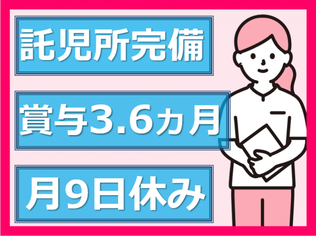 未経験者歓迎/取得見込みの方も応募OK!残業少なめ!賞与3.6ヶ月/月9日のお休み/託児所完備
