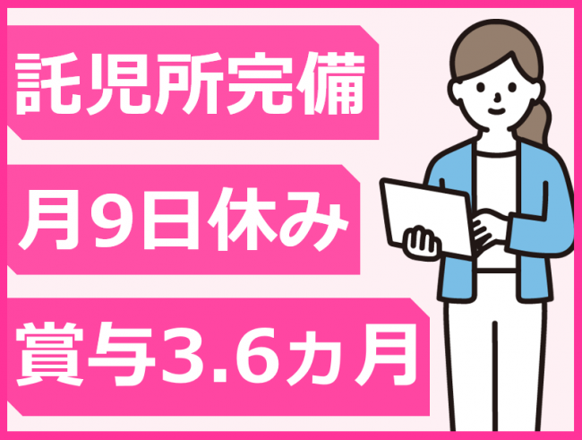 経験者優遇!賞与3.6ヶ月分!残業少なめ/託児所完備でスタッフの子育てを支援!
