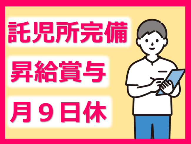 | 休日・休暇 | ・その他 ・勤務表による(月9日休み) ・年間休日108日 ・6か月経過後の年次有給休暇10日 |
