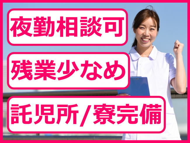 託児所完備!寮完備!日勤のみの相談可能です!残業少なめなのでプライベートも充実!