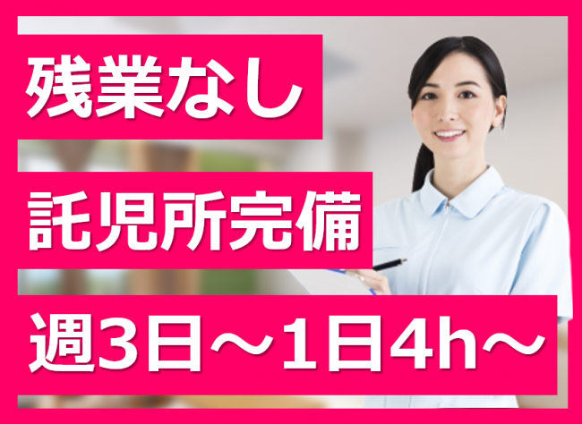 託児所完備!時間・日数相談OK!残業なし/昇給あり/社員登用あり