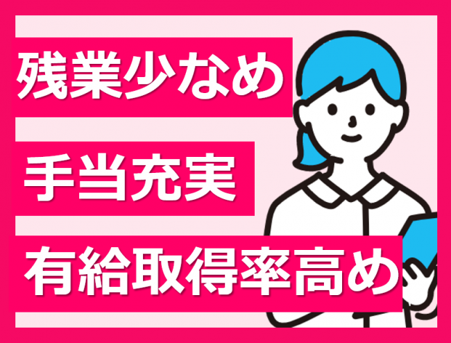 手当充実!家庭的な雰囲気の職場でお仕事!有給取得率高いです!診療費等一部免除あり/残業少なめ