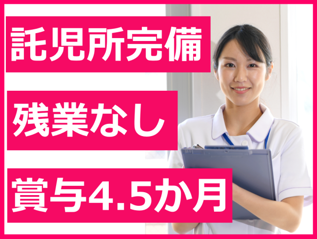 託児所完備で安心して働けます/勤務時間の相談OK/残業なし/賞与4.5か月/年間休日123日