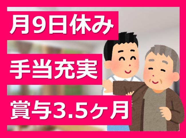介護経験者、介護福祉士資格をお持ちの方歓迎!賞与3.5カ月/扶養手当、住宅手当など手当充実!