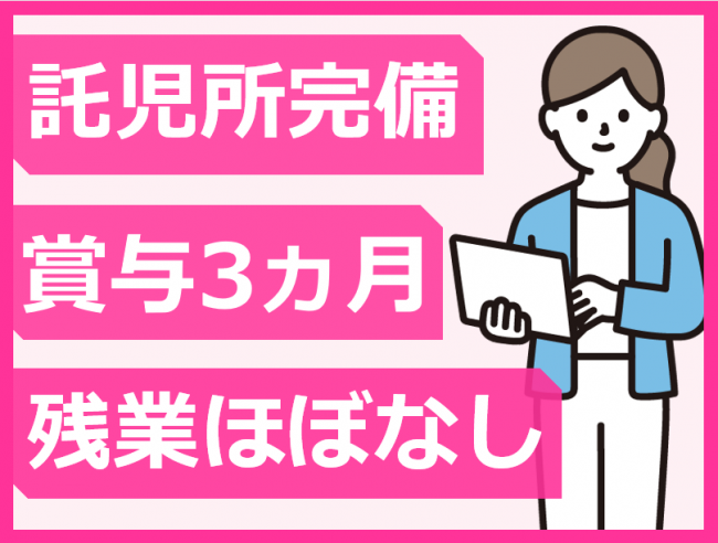 託児所完備!育児に伴う出勤日や就業時間の変更など相談可!日・祝固定休み/残業ほぼなし/賞与3カ月