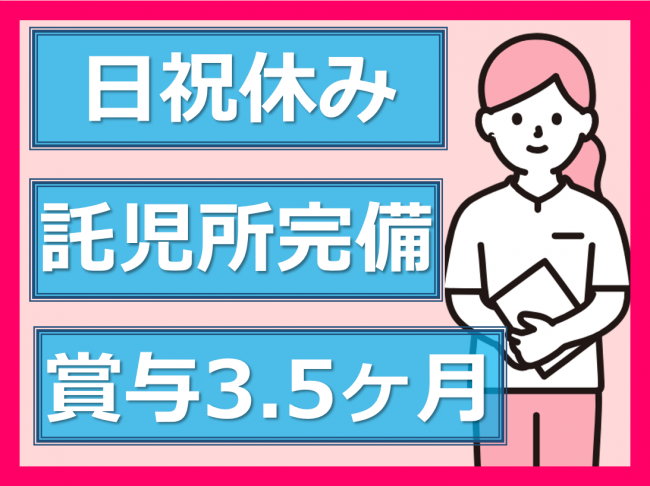 託児所完備!スタッフの子育てを支援/経験者優遇/賞与3.5カ月/日、祝日休み/年末年始休み