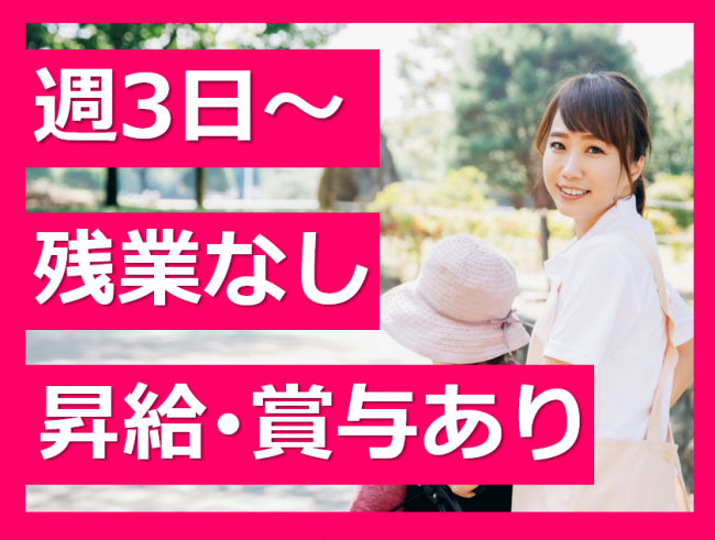 初任者研修以上の資格必須!残業なし/昇給・賞与あり/時間・日数相談OK/希望休OK/車通勤OK