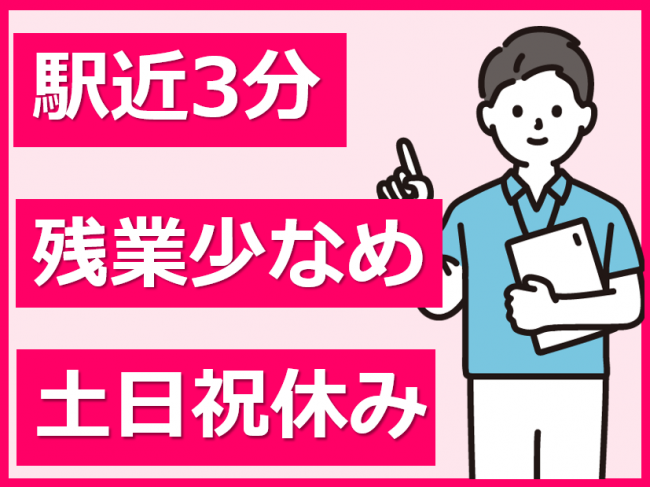 土日祝休み/完全週休二日制/残業少なめ/お盆・年末年始休み/駅近3分/バス停から徒歩0分
