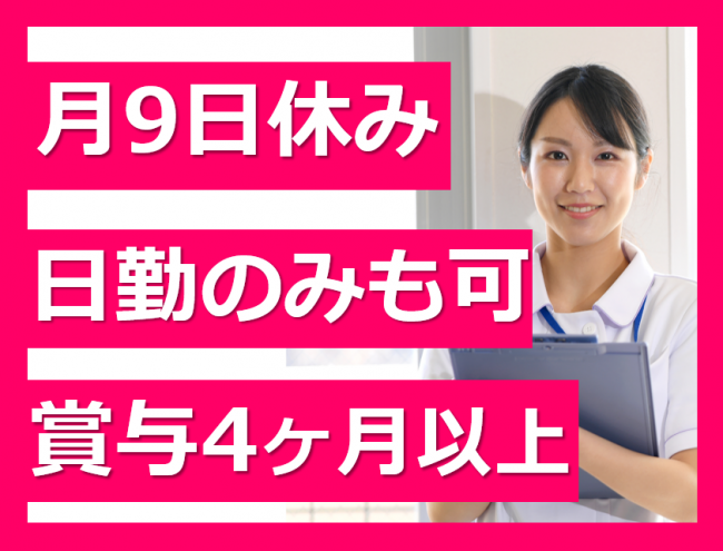 | 休日・休暇 | ・その他 ・月9日(2月は8日) ・業務計画表による ・年間休日108日 ・6か月経過後の年次有給休暇10日 |