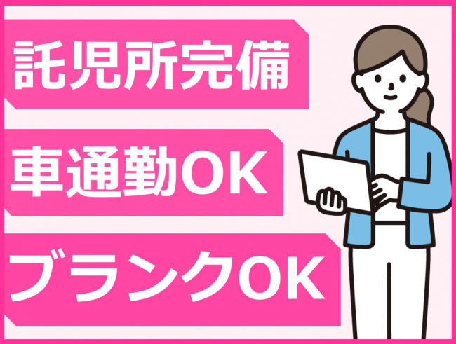 託児所完備!未経験者歓迎/年間休日123日!プライベートも充実/土日祝休み/車通勤OK!