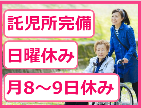 託児所完備でスタッフの子育てを支援!日曜は固定休みの月8~9日のお休み!社員登用あり!昇給あり
