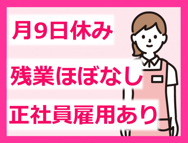 月9日休み/残業ほぼなし/昇給・賞与あり/希望休OK/お子様連れの出勤ご相談ください