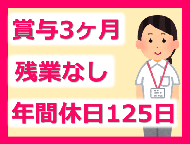年間休日125日/賞与3カ月/土日祝休み/残業なし/学校行事等にも配慮